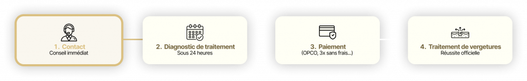 Une spécialiste agréée vous accompagne à chaque étape, de votre premier bilan jusqu’à la disparition complète des vergetures.